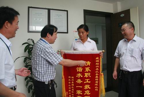 8月17日,家庭遭受火災(zāi)的供水公司分公司職工莫煜君在分公司負責(zé)人及村支書的陪同下來到集團公司送上一面“情系職工救危困,和諧水務(wù)一家親”錦旗,感謝集團工會對其的幫助。