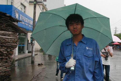 來(lái)到一個(gè)弄堂口,小吳說(shuō),你們不用跟我進(jìn)來(lái),里面只有一只表,等會(huì)還要原來(lái)返回。不一會(huì),他回來(lái)了。因?yàn)榕糜珠L(zhǎng)又窄,小吳只好撐下傘鉆出來(lái)。