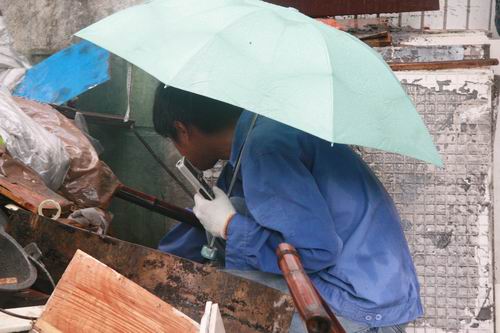 又抄了幾十只表,小吳來(lái)到一個(gè)木板、破家具等雜物的角落,把一張破竹椅拿開(kāi),又把一塊木板移開(kāi),然后蹲下身去撥弄起來(lái),過(guò)了一會(huì)離開(kāi)了。我說(shuō),你在找什么?他說(shuō),這下面有只表要抄,這戶(hù)人家把裝水表的位置作堆積場(chǎng)所了,不好抄。