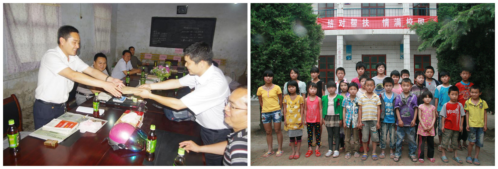 圖為江濱水處理公司愛心助學代表親自為河南商丘夏邑八里小學孩子們送去助學金