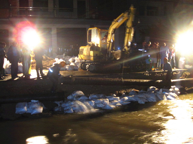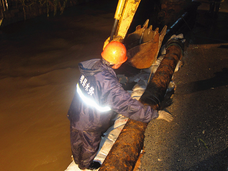 災情就是命令!集團接到縣防指命令后,立即啟動大口徑管道應急搶修預案。根據(jù)受災情況,集團迅速派出由20多名人員組成的專業(yè)搶修隊伍,隨帶各種專業(yè)搶修工具,冒著大雨趕赴受災點,并于下午16時進入現(xiàn)場開始搶修。經(jīng)過8個小時的持續(xù)作戰(zhàn),搶修隊克服重重困難,終于搶通供水管道。然而,凌晨3點多,敖紅了雙眼的搶修人員卻再次接到任務,立即趕赴王壇鎮(zhèn)幫助王壇鎮(zhèn)水廠解決因停電造成管網(wǎng)無法輸水的問題,于凌晨5點恢復供水。