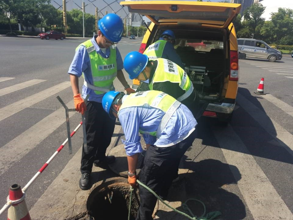 為了保證雷暴天氣不對路面造成影響,排水公司養(yǎng)護班同志們對管道一一檢測。