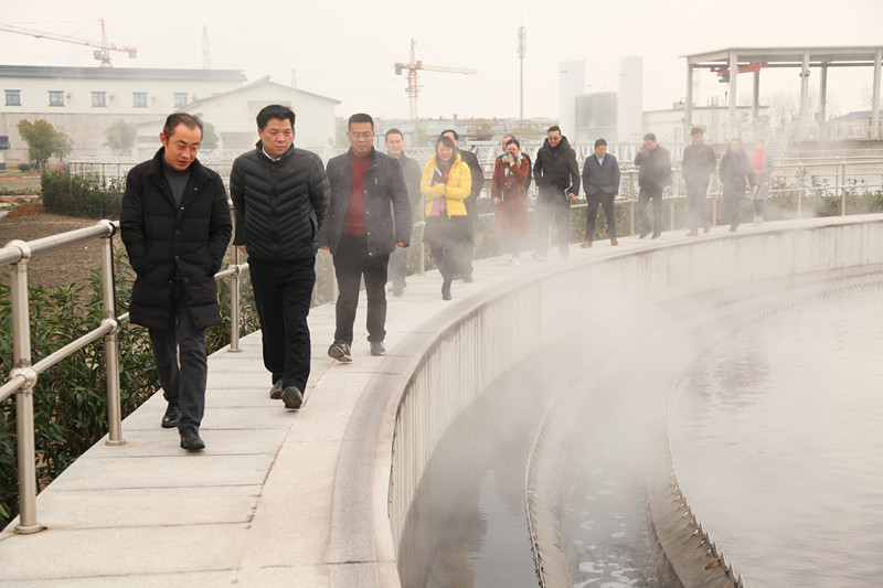 集團(tuán)領(lǐng)導(dǎo)現(xiàn)場(chǎng)參觀集聚區(qū)污水集中預(yù)處理二期系統(tǒng)