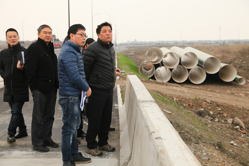 集團(tuán)領(lǐng)導(dǎo)現(xiàn)場(chǎng)參觀錢(qián)濱線供水管建設(shè)現(xiàn)場(chǎng)