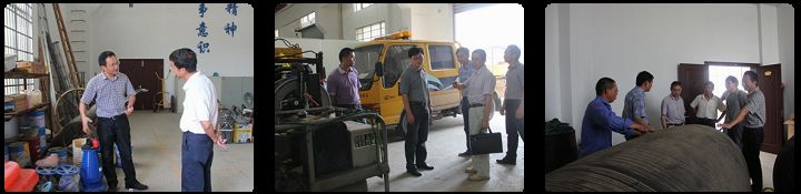 (圖1為同行間探討維修常用的設備;圖2為參觀應急發(fā)電機;圖3為維修分公司副經(jīng)理向上虞同行介紹新引進的管堵 )