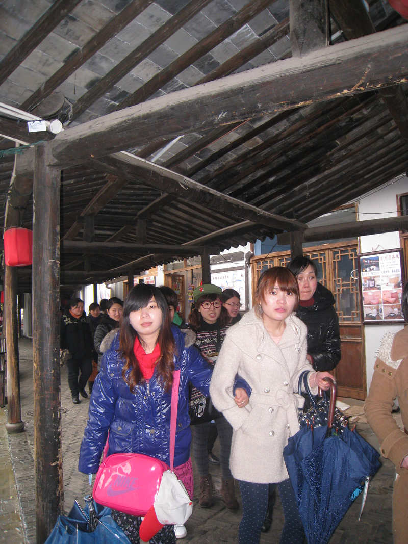 圖為女職工在西塘游玩