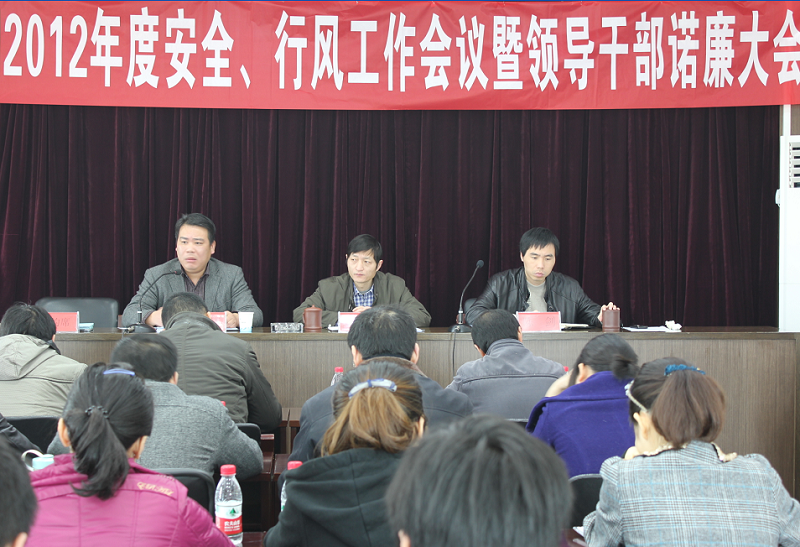 公司董副總首先對2011年安全、行風工作開展情況作了總結,并從提高意識、加強監(jiān)管、嚴格考核三方面對今年的安全、行風工作進行了部署。陳劍總經(jīng)理在會上肯定了過去一年公司安全、行風工作取得的成績,同時要求全體員工充分認識安全生產(chǎn)與行風建設的重要性,在今后的工作中,突出重點,狠抓落實,使安全、行風工作有新的突破。會上,公司與各部室簽訂了安全、行風目標管理責任書,中層正職以上領導干部向與會人員作諾廉報告。