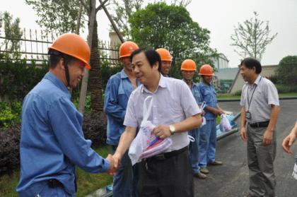 7月18日上午,集團(tuán)公司黨委副書記高小林、副總經(jīng)理王嘉賢在供水公司領(lǐng)導(dǎo)的陪同下到城區(qū)藍(lán)天玫瑰園小區(qū)工地和福全富強(qiáng)村新橋橋管改造現(xiàn)場(chǎng)慰問(wèn)供水一線職工,送上防暑慰問(wèn)品,并叮囑大家在高溫酷暑下作業(yè)要注意做好防暑措施。