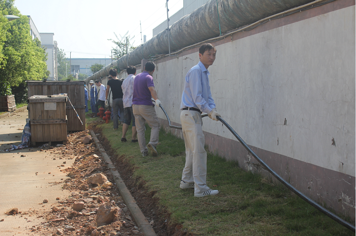 當(dāng)天氣溫高達(dá)35℃,酷暑并沒有消褪黨員們的工作勢情,大家分組結(jié)隊(duì)搬運(yùn)電纜、為管溝覆土,勞動(dòng)現(xiàn)場呈現(xiàn)出一派熱火朝天的景象。在同志們的共同努力下,僅一個(gè)小時(shí)就完成了長300米、近2噸重的電纜鋪設(shè)工作。參加本次義務(wù)勞動(dòng)的既有黨員,也有部分入黨積極分子、黨校培訓(xùn)班學(xué)員,大家用實(shí)際行動(dòng)詮釋了共產(chǎn)黨員的先進(jìn)性。