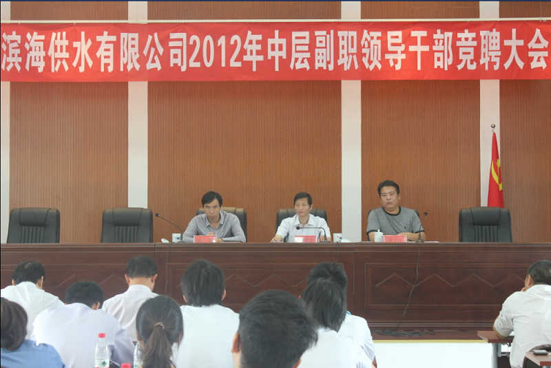 10月9日上午,濱海供水公司在新會(huì)議室召開2012年中層副職領(lǐng)導(dǎo)干部競(jìng)聘大會(huì),公開選拔辦公室、企管部、運(yùn)行部、工程部、營銷部的9個(gè)副職崗位。公司中層以上領(lǐng)導(dǎo)干部、職工代表共62人參加會(huì)議。此次競(jìng)聘,堅(jiān)持“擇優(yōu)錄用、德才兼?zhèn)?、注重?shí)績”原則,通過公開報(bào)名、資格審查,13名候選人在會(huì)上作競(jìng)聘演講。經(jīng)現(xiàn)場(chǎng)民主測(cè)評(píng)、領(lǐng)導(dǎo)表決等環(huán)節(jié)的角逐,最終8名工作表現(xiàn)突出、群眾基礎(chǔ)好的優(yōu)秀人才脫穎而出。此次競(jìng)聘,促進(jìn)了干部之間的相互交流、學(xué)習(xí),同時(shí)也使公司更加全面地了解了干部隊(duì)伍的優(yōu)缺點(diǎn),為公司進(jìn)一步選拔人才提供了參考。