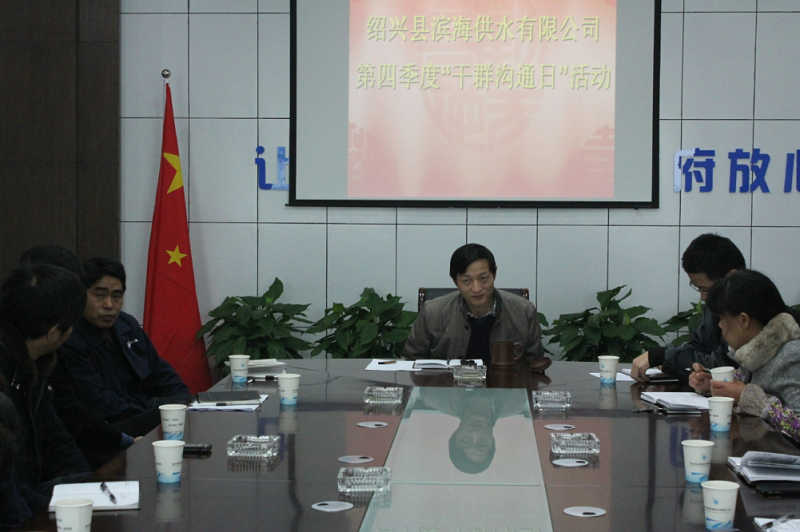 濱海水司第四季度“干群溝通日”活動于12月13日在三樓會議室舉行,本次活動圍繞基層班組規(guī)范化建設這一主題開展座談。公司領導、各部室負責人、班組長共19人參加座談。座談會上,與會人員就如何加強班組管理,更好地發(fā)揮基層班組作用,班組工作中的熱點難點問題進行“面對面”的溝通交流。
