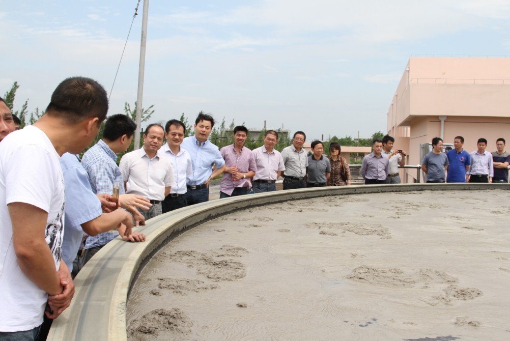 5月27日,福全鎮(zhèn)黨委書(shū)記王勤率企業(yè)家代表一行40余人到紹興水處理公司調(diào)研氣浮項(xiàng)目。調(diào)研組實(shí)地參觀(guān)了污水處理一期穩(wěn)流池和氣浮工程現(xiàn)場(chǎng),仔細(xì)聽(tīng)取了技術(shù)人員對(duì)工藝技術(shù)的講解,并對(duì)經(jīng)氣浮工藝處理前、后水樣進(jìn)行觀(guān)測(cè)。隨后,調(diào)研組一行在四樓會(huì)議室進(jìn)行座談,進(jìn)一步了解有關(guān)情況。會(huì)上,印染企業(yè)老總紛紛表示,通過(guò)這次考察和交流,了解了污水處理的新工藝、新技術(shù),對(duì)政府提出的納管新要求充滿(mǎn)了信心。