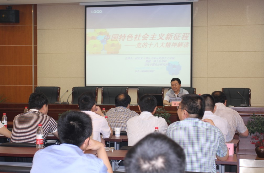 培訓(xùn)中,段教授從堅定中國特色社會主義的信念、堅持科學(xué)發(fā)展觀的科學(xué)指導(dǎo)、堅持科學(xué)的改革開放觀等六個方面對十八大精神進行解讀。深邃的政治理論用深入淺出的語言、具體詳實的事例生動表述,使全體參加講座的人員受到了一次思想的洗禮。這對于進一步學(xué)習貫徹落實十八大精神發(fā)揮了積極的推動作用。