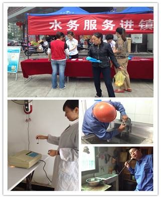 供水便民服務隊“三進”活動由分公司經理親自帶隊,實地走訪了蘭亭鎮(zhèn)婁宮村、蘭亭中學及紹興縣紅盛紡織有限公司,并為用戶免費提供管網聽漏、水質檢測和清洗水龍頭濾網等供水設施例行維護等服務,得到了用戶的一致好評。此次“三進”活動,還推出“進村入戶”用水設施檢修服務活動,上門免費對婁宮村的3戶村民和1家餐館開展水嘴、抽水馬桶檢查,水質檢測及供水管道改道換裝等服務,得到了村民的高度贊揚。