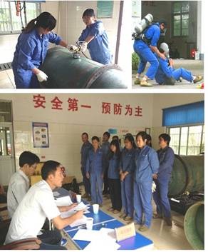 本次演練分空氣呼吸機正確佩戴使用和瓶身、針型閥應急堵漏操作兩個項目進行,參演人員在現(xiàn)場模擬出的緊張氛圍中都能井然有序、有條不紊地完成全套動作。通過本次液氯演練,提高了值班員對突發(fā)事故的分析應對處理能力,取得了較好的效果。