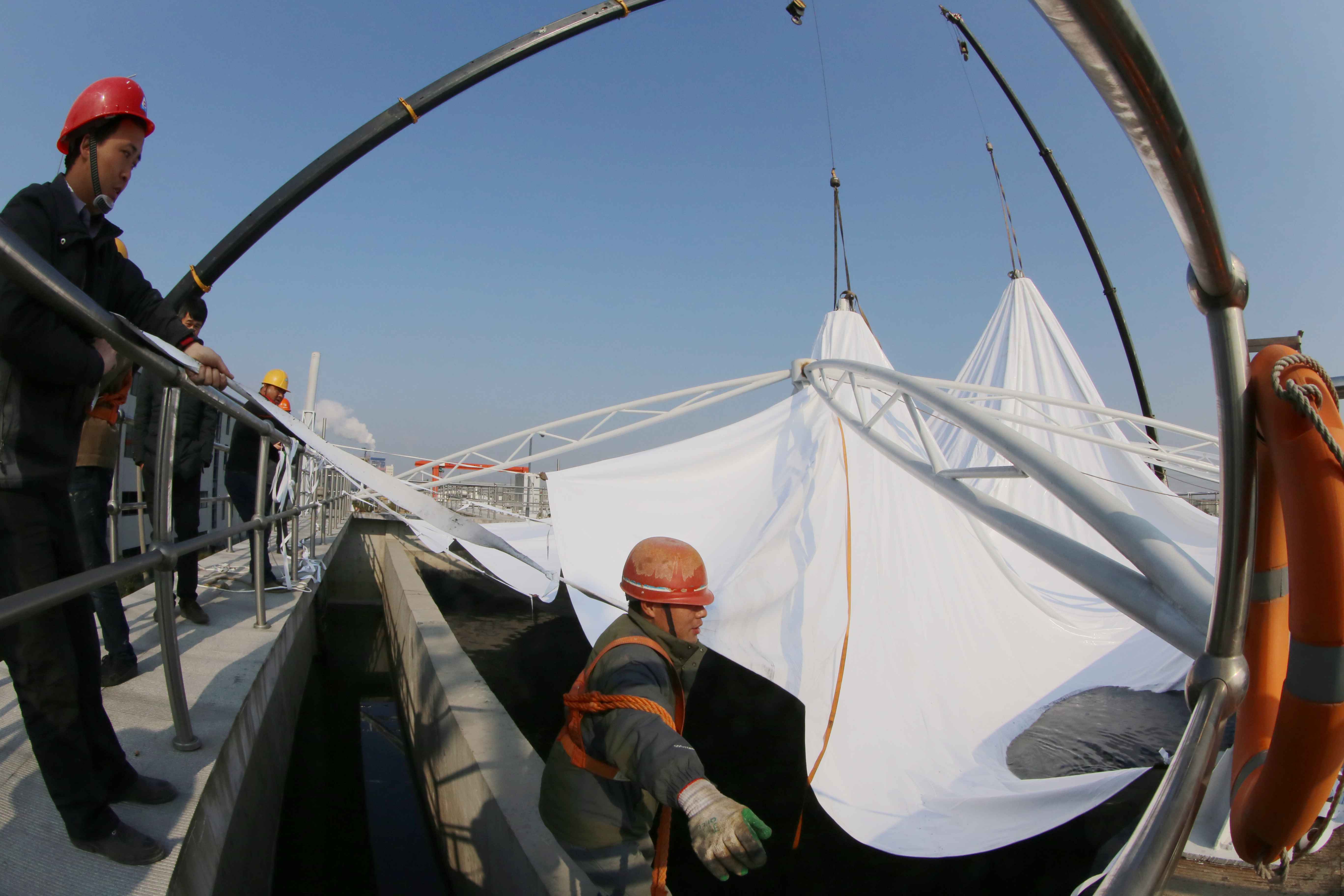 經(jīng)過1個多月的緊張施工,污水集中預(yù)處理系統(tǒng)穩(wěn)流池除臭工程于1月初完成設(shè)備安裝調(diào)試,進行除臭設(shè)備試運行。