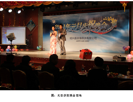 為增強(qiáng)青年員工的凝聚力,鼓勵(lì)職工以嶄新的姿態(tài)迎接新年的到來(lái),濱海水司團(tuán)總支于2010年12月30日晚,在市區(qū)稽山賓館舉行濱海水司團(tuán)總支2010元旦文藝晚會(huì)。本次晚會(huì)邀請(qǐng)了集團(tuán)領(lǐng)導(dǎo)高小林、馮梁峰及多名兄弟單位領(lǐng)導(dǎo)出席并擔(dān)任晚會(huì)評(píng)委。