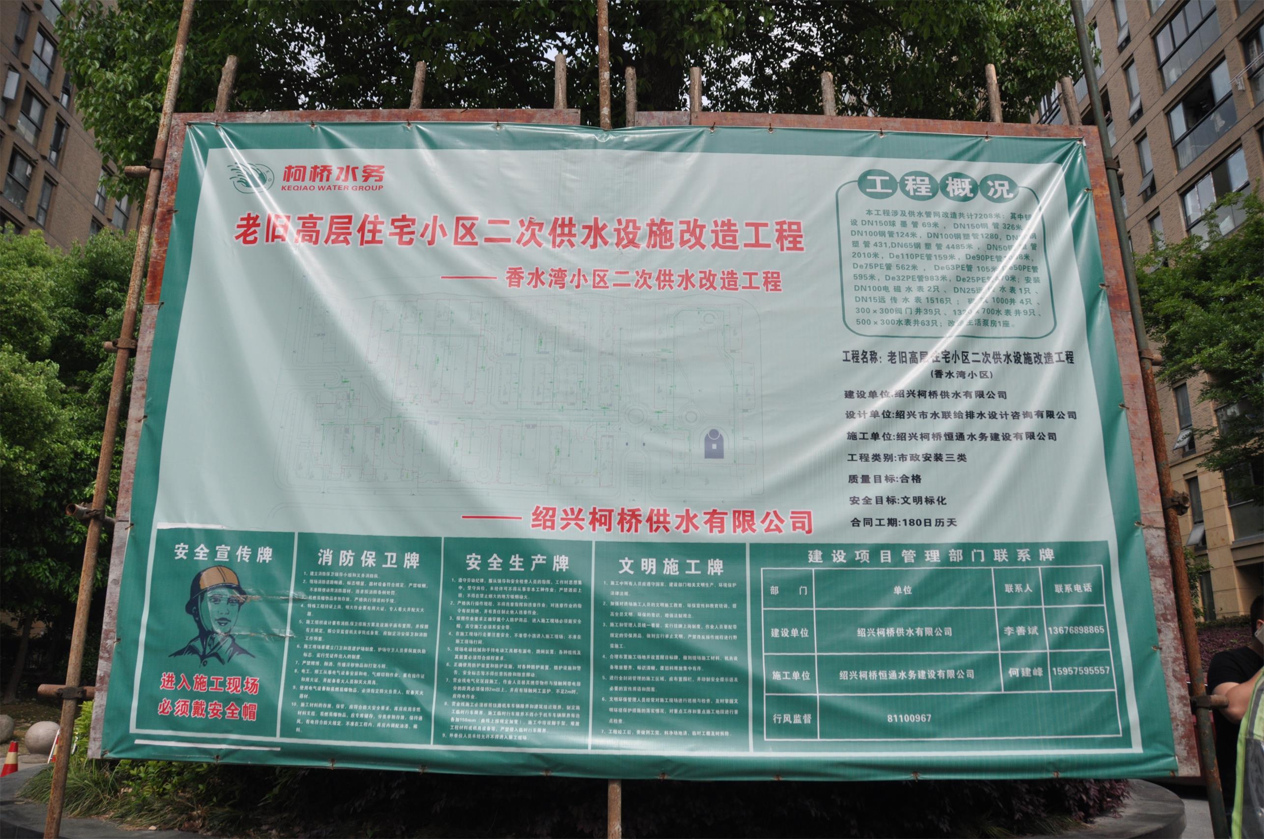 為確保2017年柯橋城區(qū)高層住宅小區(qū)二次供水設施改造工程順利推進,近日,公司充分利用LED電子屏、宣傳窗等載體,通過在改造中的8個小區(qū)大門入口懸掛巨型工程概況牌、在小區(qū)LED大屏幕滾動播報改造信息、在宣傳欄和單元樓門口張貼改造宣傳海報等措施,全方位、多角度、廣渠道宣傳工程概況和改造進度,公開工程狀況,提升群眾的參與度,通過公開溝通,取得群眾理解支持,從而進一步推動工程順利進行。
