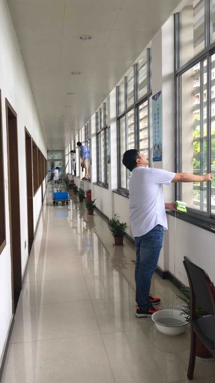 此次活動主要對水質大樓外墻窗戶進行清洗。清洗過程中,大家表現(xiàn)出不怕臟、不怕累的精神,即便最后下起了雨,依然冒雨繼續(xù)清洗工作。