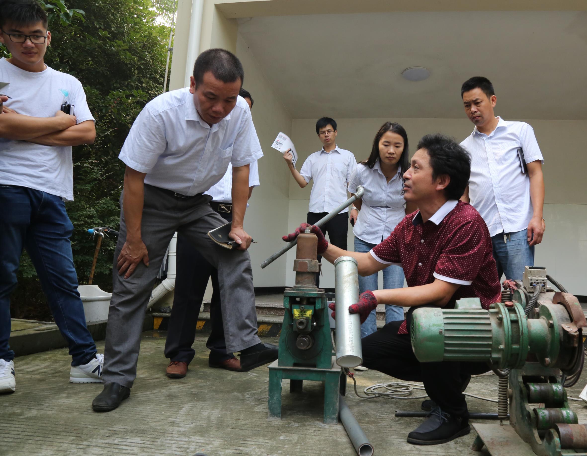 培訓(xùn)主要圍繞鋼塑管開槽施工操作、配件和鋼塑管的連接工藝展拉開,廠方技術(shù)人員示范操作結(jié)束后,還讓每位在場受訓(xùn)人員對(duì)不同口徑的鋼塑管開槽與連接進(jìn)行了模擬操作。
