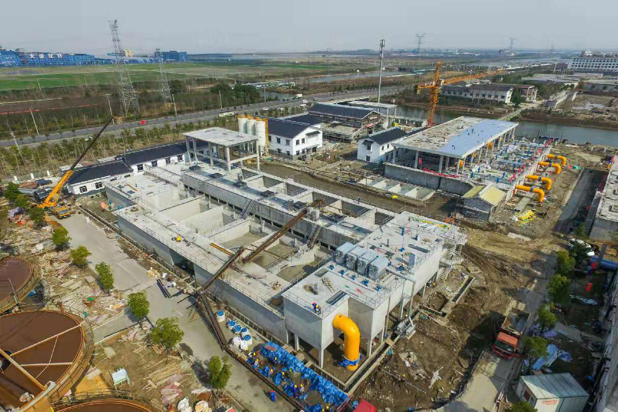 2019年濱海印染產(chǎn)業(yè)集聚區(qū)已落戶61家印染企業(yè),為進(jìn)一步增強(qiáng)污水處理系統(tǒng)達(dá)標(biāo)運(yùn)行的可靠性和出水排放的穩(wěn)定性。2018年9月,污水強(qiáng)化脫氮工程正式動(dòng)工建設(shè)。該工程概算總投資1.85億元,設(shè)計(jì)處理規(guī)模20萬噸/日,建設(shè)用地約25畝。主要新建反硝化生物濾池、活性炭投加池、綜合加藥間、高效混凝劑投加系統(tǒng)、出水泵房等項(xiàng)目。其中,濾池采用特殊規(guī)格及形狀的陶料濾料作為反硝化生物的掛膜介質(zhì),能極好去除總氮,確保污水處理后的總氮達(dá)標(biāo)率保持100%。由于該工程任務(wù)重、工期緊,公司針對(duì)關(guān)鍵節(jié)點(diǎn),細(xì)化施工計(jì)劃,加強(qiáng)協(xié)調(diào)管理。通過平行施工、交叉施工等多種方式,于2018年12月底完成土建主體結(jié)構(gòu)施工,2019年 1月中旬完成核心工藝濾池底板工程,確保污水強(qiáng)化脫氮工程與現(xiàn)有系統(tǒng)全方面對(duì)接。